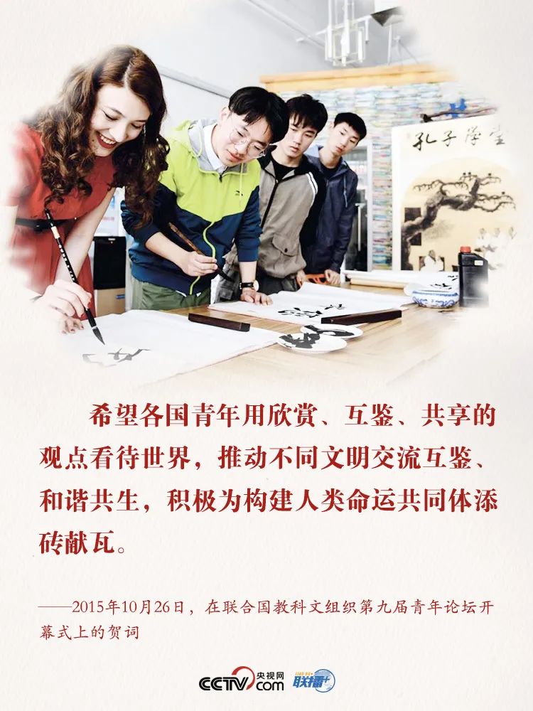 8月12日,是一年一度的國際青年日。 世界的未來屬于年輕一代。習近平主席曾說:“全球青年有理想、有擔當,人類就有希望,推進人類和平與發(fā)展的崇高事業(yè)就有源源不斷的強大力量?!苯裉斓娜祟惷\共同體,比以往任何時候都呼喚青年肩負起重任。 在外交場合發(fā)言、給留學生們回信、向青年論壇致賀信……近年來,習近平主席多次真誠邀請世界各國青年攜手推動構建人類命運共同體。
