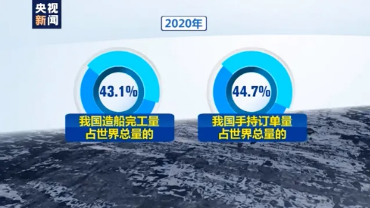 據統計,2020年,我國造船完工量和手持訂單量,分別占世界總量的43.1%和44.7%,繼續在國際市場份額中繼續領先。