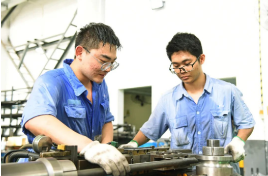 七〇八所海迅公司生產部的員工計師傅雖已汗如雨下,仍專注于銑床加工之中。