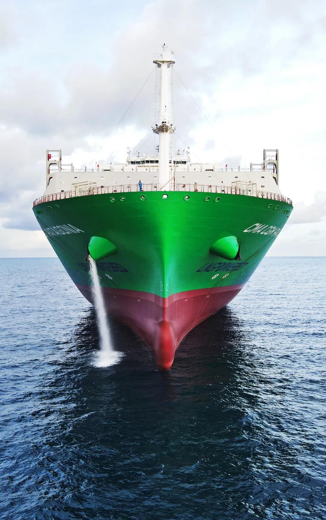江南造船攜手中船貿(mào)易建造的15000TEU雙燃料超大型集裝箱船以LNG為主要燃料,采用了中國(guó)船舶集團(tuán)自主品牌雙燃料WinGD主機(jī),可支持船舶往返亞歐航線。與傳統(tǒng)燃油集裝箱相比,該型船可減少20%的碳、85%的氮氧化物和99%的硫排放。>>