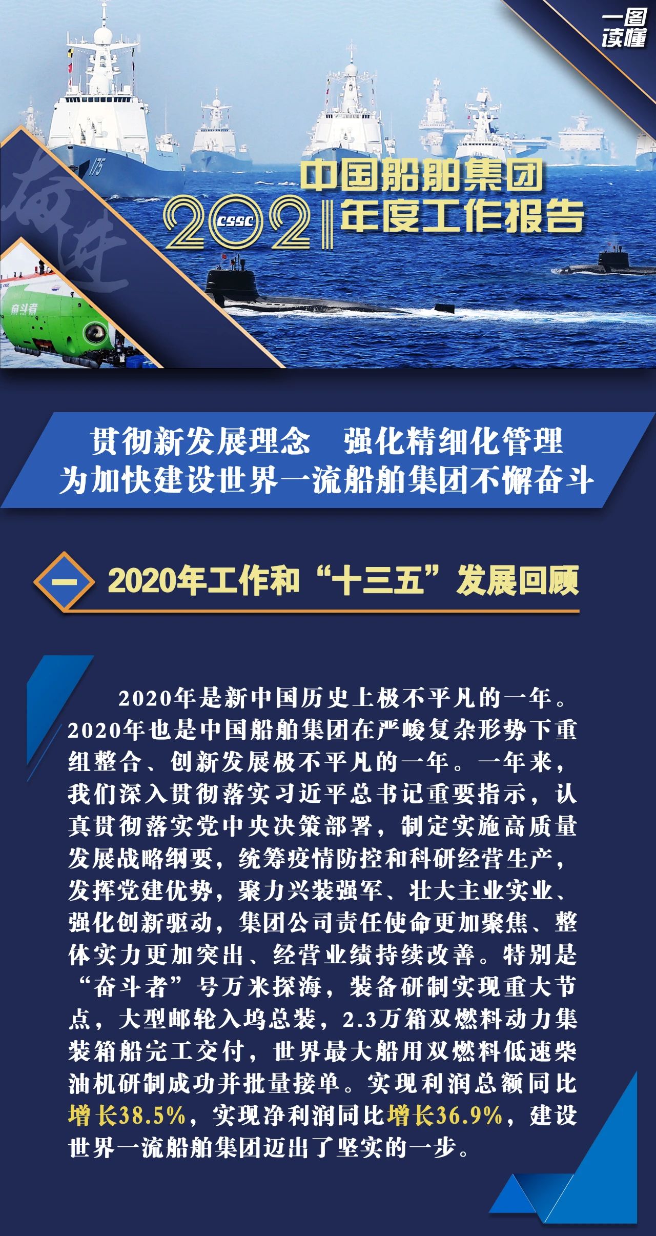 1月27日,在中國船舶集團(tuán)有限公司2021年度工作會(huì)議上,中國船舶集團(tuán)黨組書記、董事長雷凡培作了題為《貫徹新發(fā)展理念 強(qiáng)化精細(xì)化管理 為加快建設(shè)世界一流船舶集團(tuán)不懈奮斗》的工作報(bào)告。