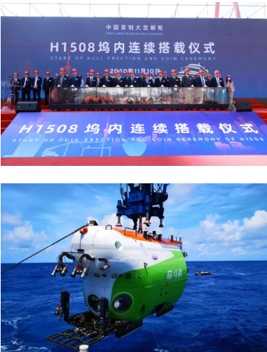 2020年,中國(guó)船舶集團(tuán)在科技創(chuàng)新方面取得重要突破,核心競(jìng)爭(zhēng)力持續(xù)提升。“奮斗者”號(hào)載人潛水器在馬里亞納海溝10909米處成功坐底,實(shí)現(xiàn)了中國(guó)載人深潛首次萬(wàn)米突破;船用低速機(jī)工程原理樣機(jī)、工程樣機(jī)、關(guān)重件樣件試驗(yàn)驗(yàn)證取得新成果;與廣東省簽訂船舶LNG動(dòng)力改造項(xiàng)目合作框架協(xié)議。在持續(xù)推進(jìn)自主可控工程與關(guān)鍵核心技術(shù)攻關(guān)方面,中國(guó)船舶集團(tuán)承擔(dān)多項(xiàng)攻關(guān)任務(wù)實(shí)現(xiàn)關(guān)鍵核心技術(shù)突破。在軍民品科研開發(fā)、先進(jìn)制造技術(shù)研發(fā)應(yīng)用、科技創(chuàng)新基礎(chǔ)夯實(shí)方面,中國(guó)船舶集團(tuán)也開展了大量工作,并取得顯著成效。