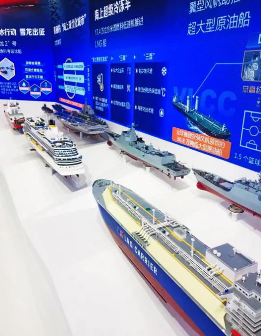 這次中國船舶集團展區(qū)以“向海圖強,創(chuàng)新引領(lǐng)”為主題,以“全面建設(shè)世界一流船舶集團”的戰(zhàn)略目標(biāo)和“引領(lǐng)行業(yè)發(fā)展、支撐國防建設(shè)、服務(wù)國家戰(zhàn)略”的企業(yè)使命為主線,圍繞具有代表性、突破性、標(biāo)志性、引領(lǐng)性的自主品牌,以及高質(zhì)量裝備和工程項目,全面展示集團公司在穩(wěn)定經(jīng)濟發(fā)展、帶動科技創(chuàng)新、服務(wù)民生保障、推動中國制造走向世界進程中所取得的成就。