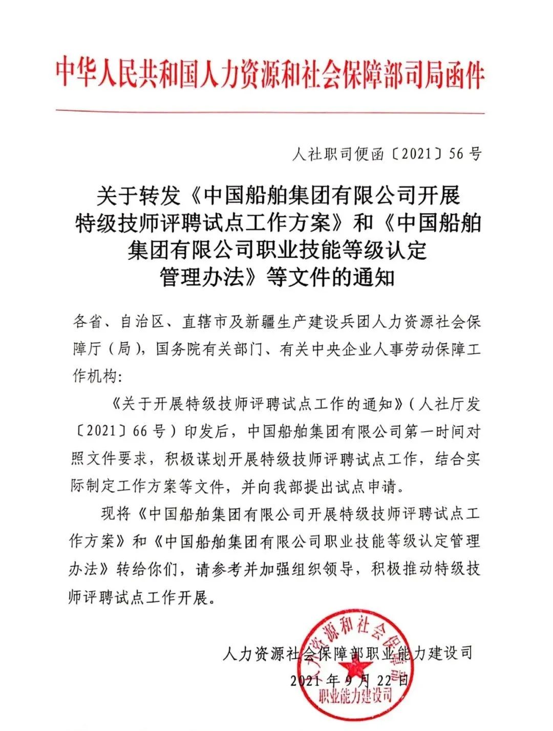 第一家!中國船舶集團成為首家特級技師評聘試點