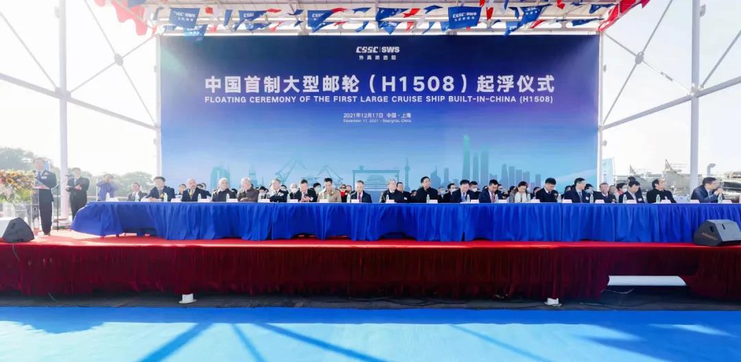 中國船舶集團總部有關(guān)部門和所屬相關(guān)企業(yè),以及上海海事局、上海港引航站、嘉年華集團、芬坎蒂尼集團、中國進出口銀行、中國建設(shè)銀行、中國銀行、中國人民財產(chǎn)保險股份有限公司、勞氏船級社、中國船級社、意大利船級社、上海建工集團等負責人出席起浮儀式。