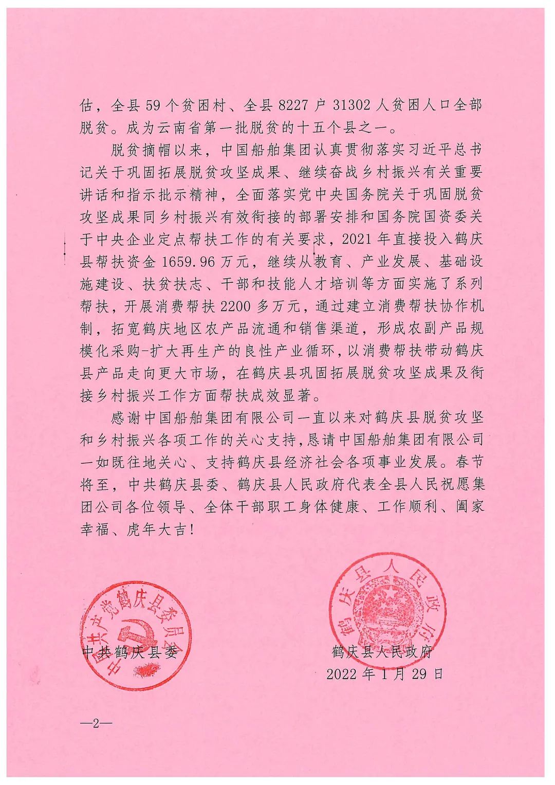 中國船舶集團收到定點幫扶地區感謝信