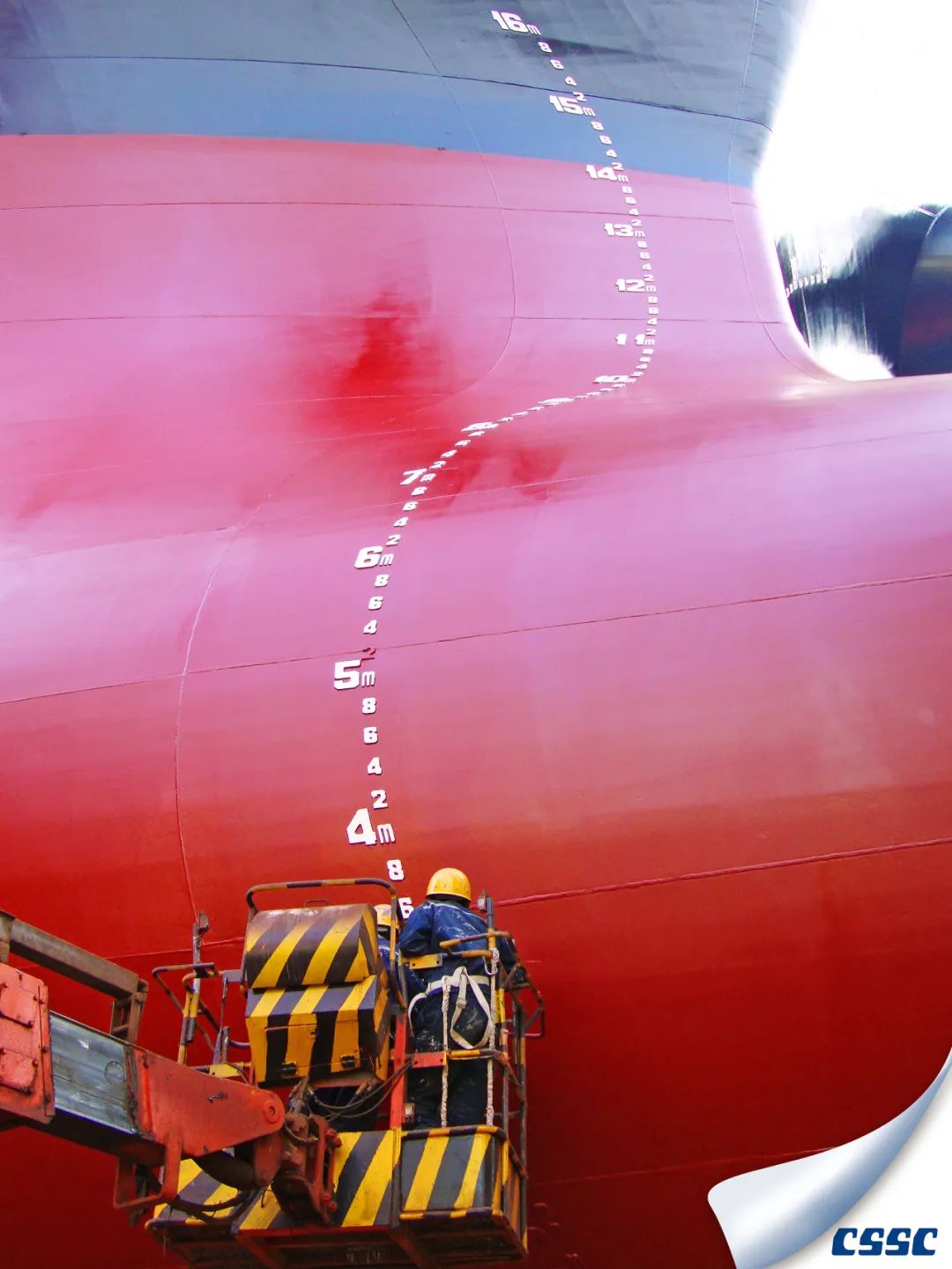 該片拍攝于中船澄西金山塢內(nèi)MARITIME VANESSA (HONGKONG) 船進塢油漆涂裝和螺旋槳修理作業(yè)時,創(chuàng)作主要利用船舶與現(xiàn)場作業(yè)人物大小形成超大反差,以獨特的視角展現(xiàn)了涂裝后新船的雄偉和迷人色彩。