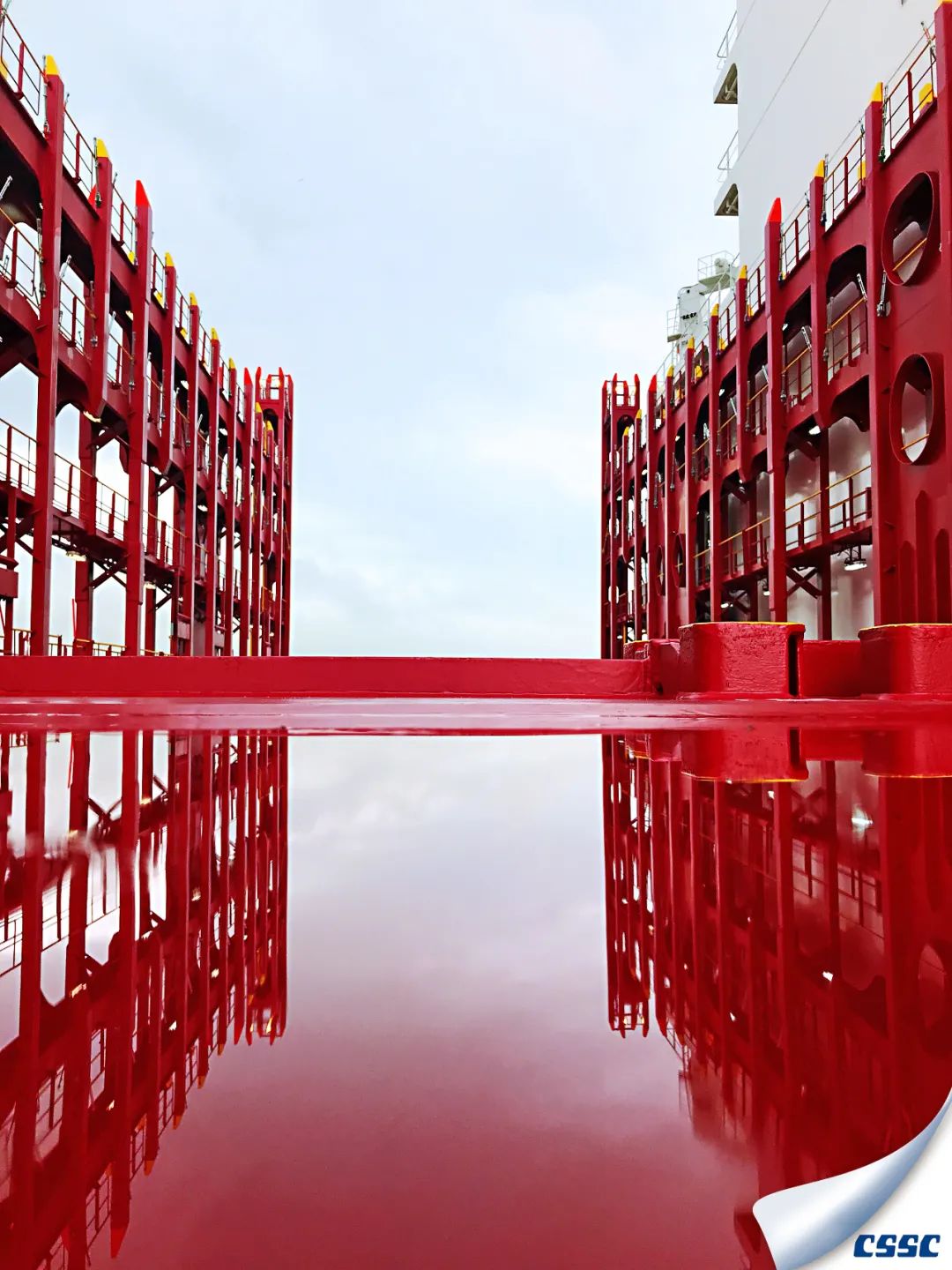 由七〇八所研發(fā)設計的20000TEU超大型集裝箱船試航期間,紅色的船體與倒影融為一體,充滿了夢幻色彩,寓意紅色基因在實現(xiàn)海洋強國夢的征程中愈發(fā)光彩奪目。