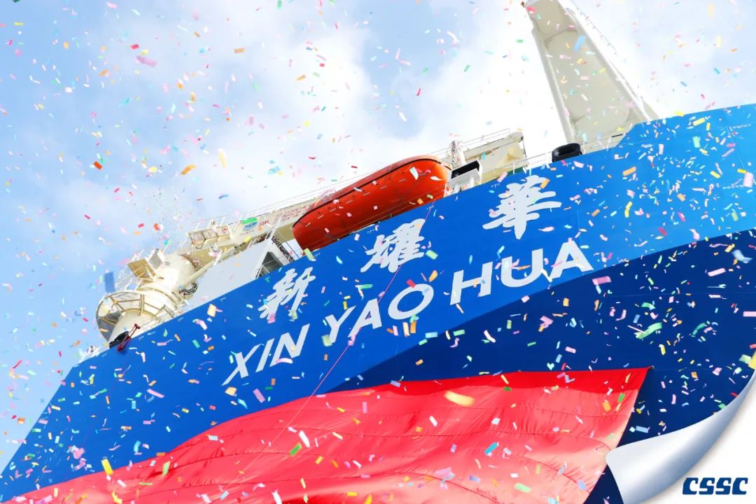 國內(nèi)第二大半潛船,中遠海特8萬噸半潛船“新耀華”號命名交付。
