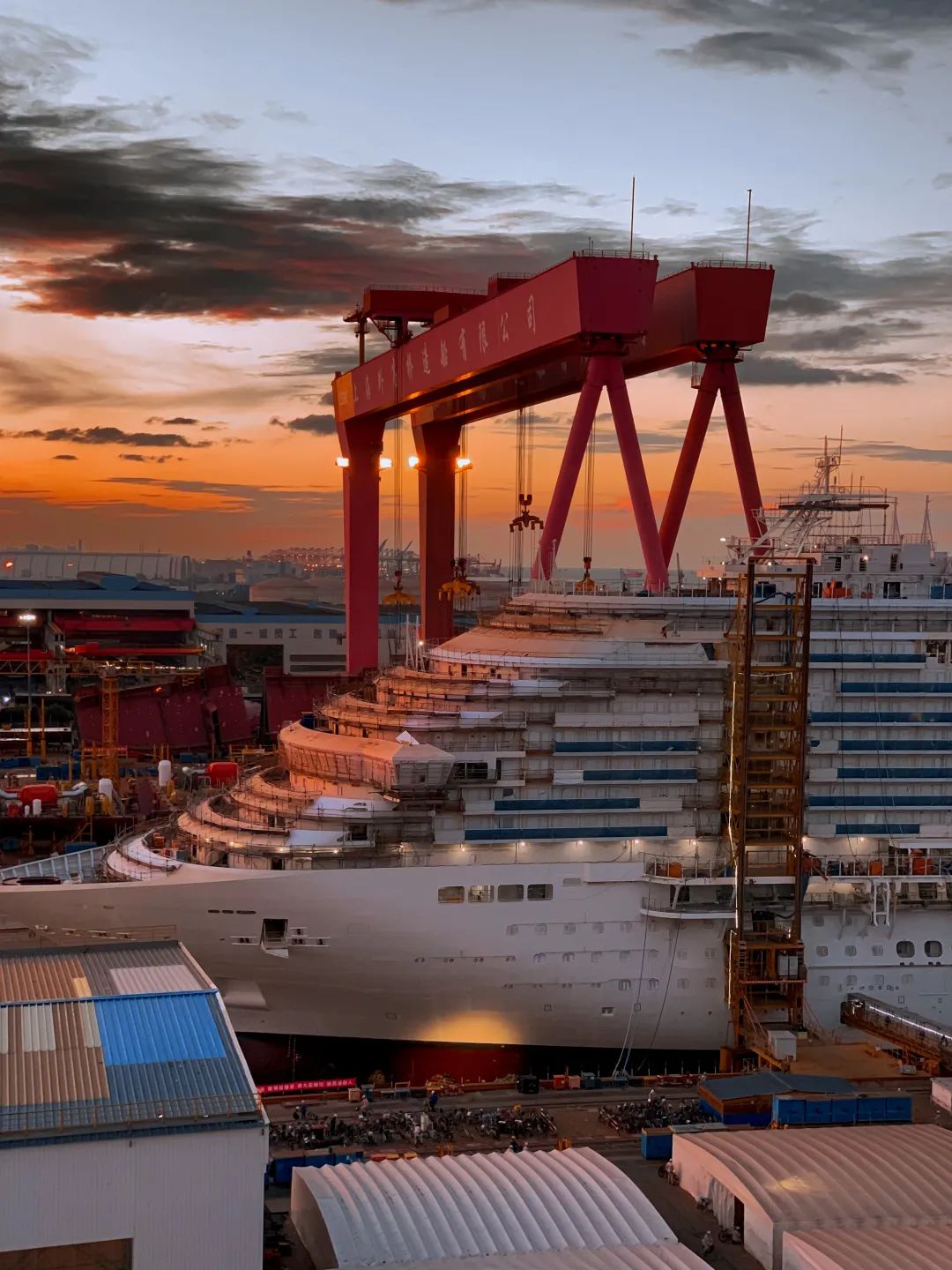 全力推進(jìn)大型郵輪設(shè)計(jì)建造是中國船舶集團(tuán)貫徹習(xí)近平總書記關(guān)于發(fā)展郵輪產(chǎn)業(yè)是利國利民重要指示精神、落實(shí)國家戰(zhàn)略、滿足人民美好生活需要的重大舉措,也是中國船舶工業(yè)轉(zhuǎn)型升級(jí)、提升中國制造在全球影響力的標(biāo)志性工程,能帶動(dòng)中國郵輪全產(chǎn)業(yè)鏈快速崛起。同時(shí),對我國建設(shè)海洋強(qiáng)國、制造強(qiáng)國、科技強(qiáng)國將產(chǎn)生重大而又深遠(yuǎn)的影響,因此被列為中國船舶集團(tuán)的“一號(hào)工程”。2019年10月18日,備受世人矚目的我國首艘國產(chǎn)大型郵輪在中國船舶集團(tuán)旗下外高橋造船正式開工點(diǎn)火,全面進(jìn)入實(shí)質(zhì)性建造階段,標(biāo)志著中國船舶工業(yè)正式跨入大型郵輪建造新時(shí)代。2022年8月8日,第二艘國產(chǎn)大型郵輪開工建造,標(biāo)志著中國船舶工業(yè)已初步掌握大型郵輪設(shè)計(jì)建造關(guān)鍵核心技術(shù),在開啟“雙輪戲珠”新時(shí)代的同時(shí),向大型郵輪批量化、系列化建造邁出了具有里程碑意義的一步。