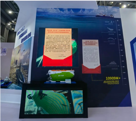 吸引眼球的還有“奮斗者”號載人潛水器,以及雪龍-2號、遠望7號等深海極地重大裝備、航天測量船家族。在展臺處,不僅播放了“奮斗者”號萬米深潛坐底激動人心的畫面,還展示了習近平總書記的賀信,激勵中國船舶人踔厲奮發(fā)、勇毅前行。