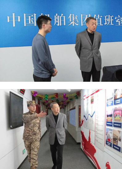 2月8日,中國船舶集團(tuán)有限公司黨組書記、董事長溫剛在集團(tuán)公司總部檢查春節(jié)總值班安排和中控室運(yùn)行情況,走訪慰問堅(jiān)守崗位員工。