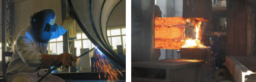 施工現場焊花飛舞、壓機轟鳴