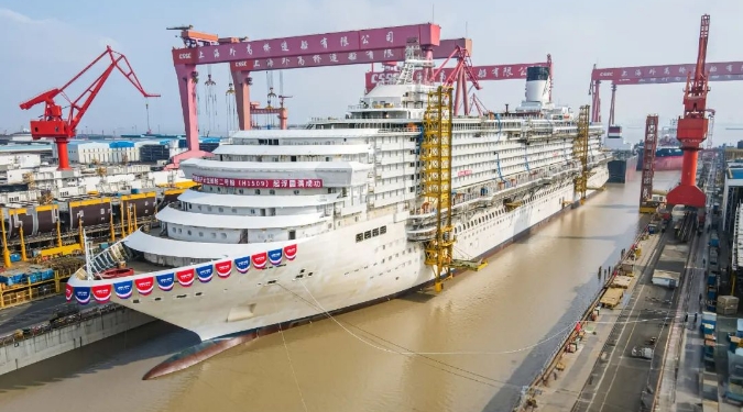 第二艘國產大型郵輪“愛達·花城號”完成塢內起浮