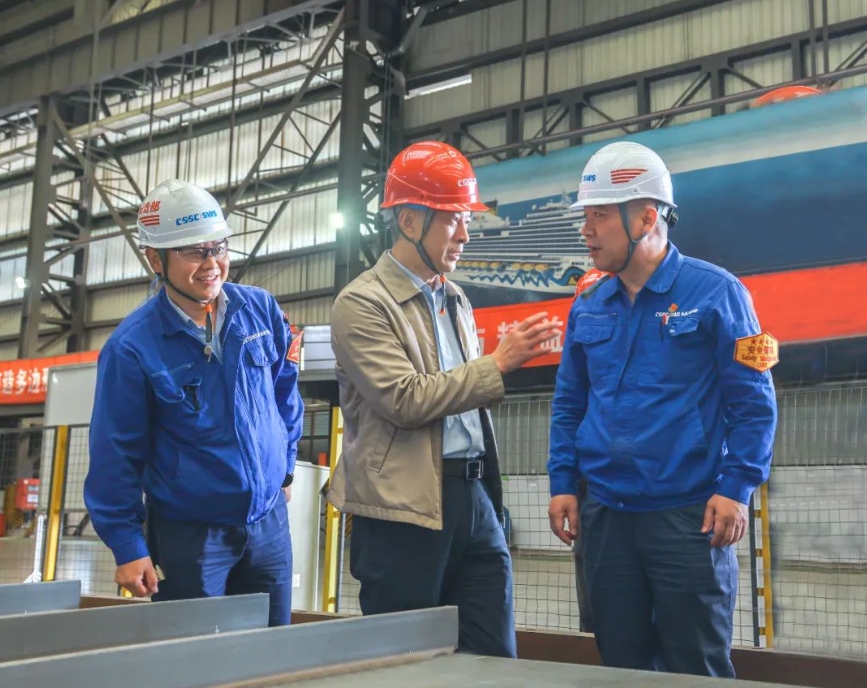 在相關(guān)二級(jí)管理單位,徐鵬調(diào)研了相關(guān)重點(diǎn)實(shí)驗(yàn)室、車間和在建的國產(chǎn)大型郵輪“愛達(dá)·花城號(hào)”,與一線職工深入交流,并聽取了單位負(fù)責(zé)人關(guān)于經(jīng)營生產(chǎn)、公司治理、深化改革、隊(duì)伍建設(shè)、黨的建設(shè)等方面情況匯報(bào)。