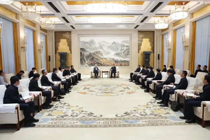王忠林對(duì)徐鵬一行來訪表示歡迎,感謝中船集團(tuán)對(duì)湖北經(jīng)濟(jì)社會(huì)發(fā)展給予的支持。王忠林表示,湖北高度重視中船集團(tuán)在鄂發(fā)展,將持續(xù)優(yōu)化營商環(huán)境,為中船集團(tuán)在鄂發(fā)展創(chuàng)造良好條件,希望雙方深化戰(zhàn)略合作,共同推動(dòng)綠色船舶、智能裝備等產(chǎn)業(yè)發(fā)展及先進(jìn)技術(shù)成果轉(zhuǎn)化,共同服務(wù)國家重大戰(zhàn)略。