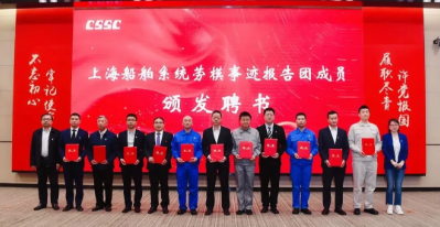 會(huì)上播放了《2020年上海船舶系統(tǒng)勞模、先進(jìn)風(fēng)采錄》視頻,為12位勞模事跡巡講團(tuán)成員頒發(fā)了聘書。按照計(jì)劃,勞模事跡巡講團(tuán)將赴上海船舶系統(tǒng)的企事業(yè)單位進(jìn)行宣講。
