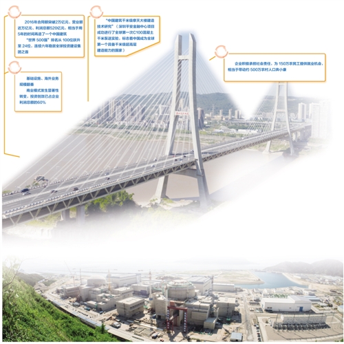 黨的十八大以來的5年,中國建筑連續5次獲得國務院國資委中央企業負責人經營業績考核A級,任期考核蟬聯“業績優秀企業”榮譽稱號;5年來,中國建筑在財富“世界500強”排名從100位躍升至24位;5年來,中國建筑連續穩居全球投資建設集團之首,獲得標普、穆迪、惠譽等國際三大評級機構信用評級A級,為全球建筑行業最高信用評級。自1982年組建以來,中國建筑實現“每10年多環比增長10倍”的快速發展目標。2016年,中國建筑合同額突破2萬億、營業額近萬億、利潤總額520億,營業收入、利潤總額分別位居國務院國資委管理的中央企業第4位、第5位,相當于用5年的時間再造了一個中國建筑。
