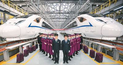 12月4日,西成高鐵首發乘務班組在中國鐵路成都局集團有限公司成都動車段亮相。(薛玉斌 攝)