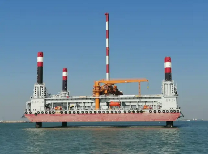 ????在沉管管節(jié)安放前,需要對基槽進行碎石整平。由中國船舶集團旗下上海船院研發(fā)設(shè)計的自升平臺式碎石鋪設(shè)整平船“一航津平2”號上場。該船集基準定位、石料輸送、高精度鋪設(shè)整平、質(zhì)量檢測驗收功能于一體,被譽為深水碎石鋪設(shè)的“3D打印機”。