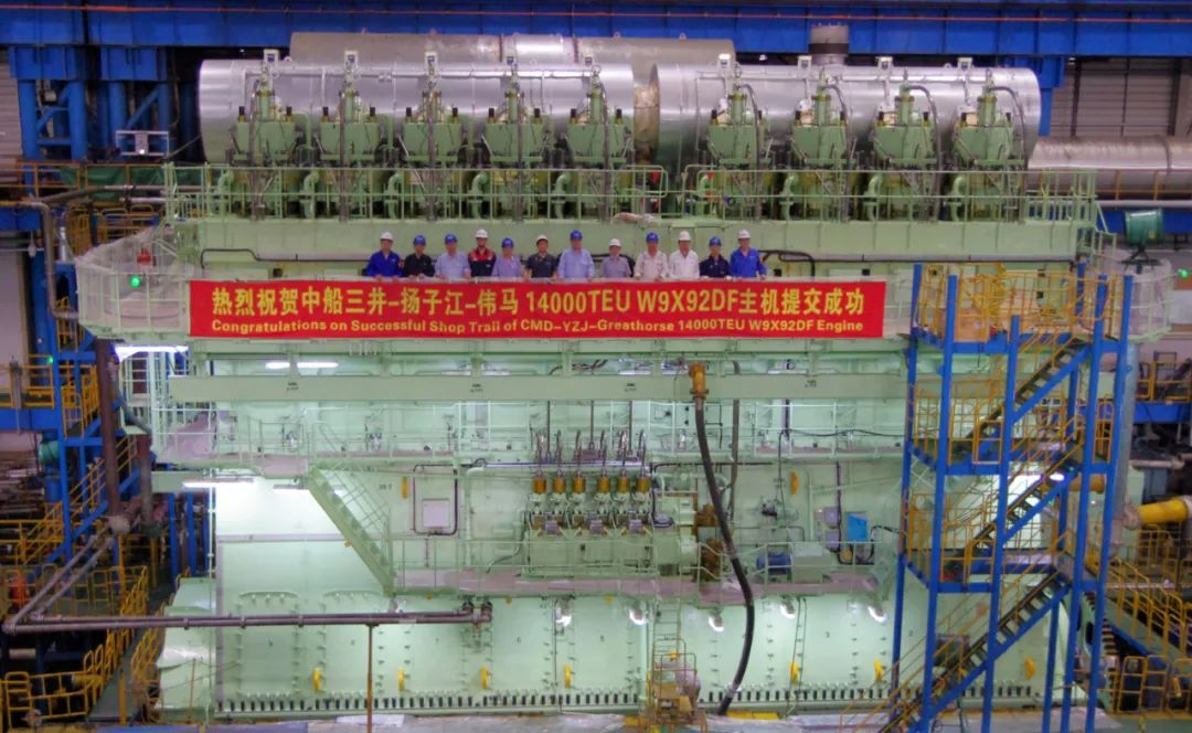 CMD-WinGD 9X92DF雙燃料主機(jī)最大功率42560kW,由中船動力集團(tuán)下屬溫特圖爾發(fā)動機(jī)有限公司研發(fā),上海中船三井造船柴油機(jī)有限公司生產(chǎn)制造將安裝在14000TEU集裝箱船上