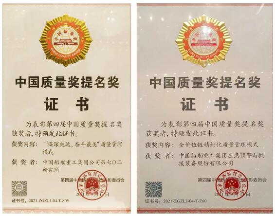 9月16日,在中國質(zhì)量(杭州)大會上,第四屆中國質(zhì)量獎(jiǎng)評選結(jié)果揭曉,中國船舶集團(tuán)旗下七〇二所、中船應(yīng)急分別以“謀深致遠(yuǎn),奮斗最美”質(zhì)量管理模式、全價(jià)值鏈精細(xì)化質(zhì)量管理模式,榮獲第四屆中國質(zhì)量獎(jiǎng)提名獎(jiǎng)。