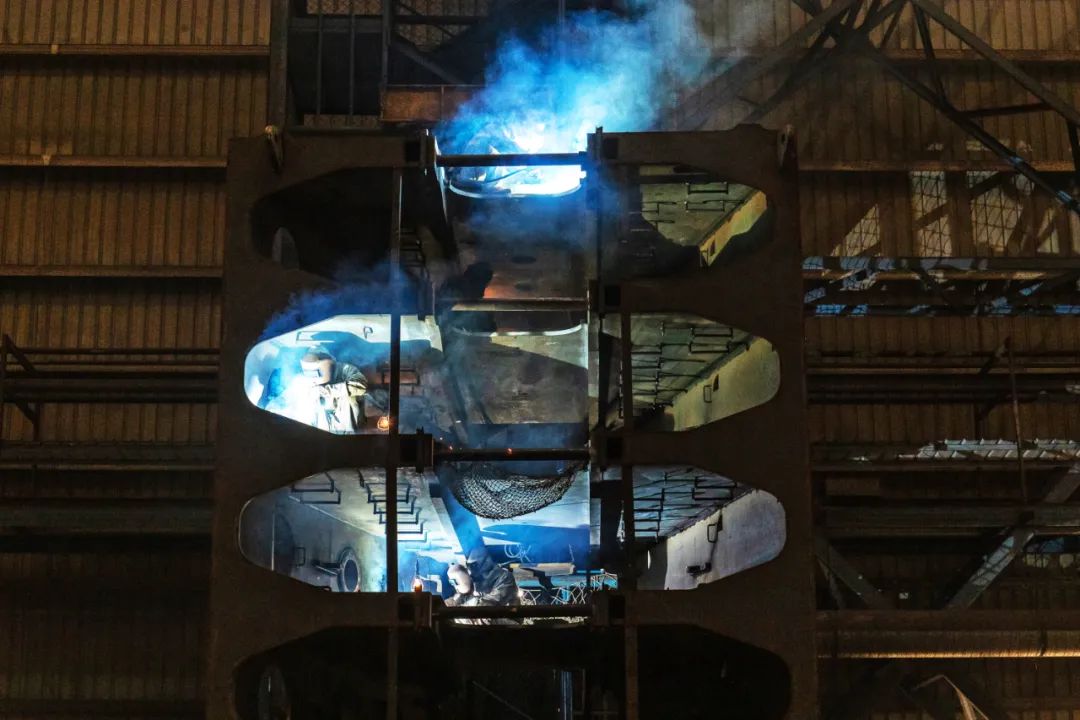 大船集團(tuán)全體干部職工統(tǒng)一思想,凝心聚力,堅(jiān)守本職擔(dān)當(dāng),積極主動作為,爭分奪秒,奮力沖刺。其中FPSO-8項(xiàng)目是大船集團(tuán)建造的第七艘FPSO。今年以來,F(xiàn)PSO-8項(xiàng)目提前計(jì)劃節(jié)點(diǎn),順利實(shí)現(xiàn)鋪底,并完成了連續(xù)六個(gè)總段的塢內(nèi)合攏。