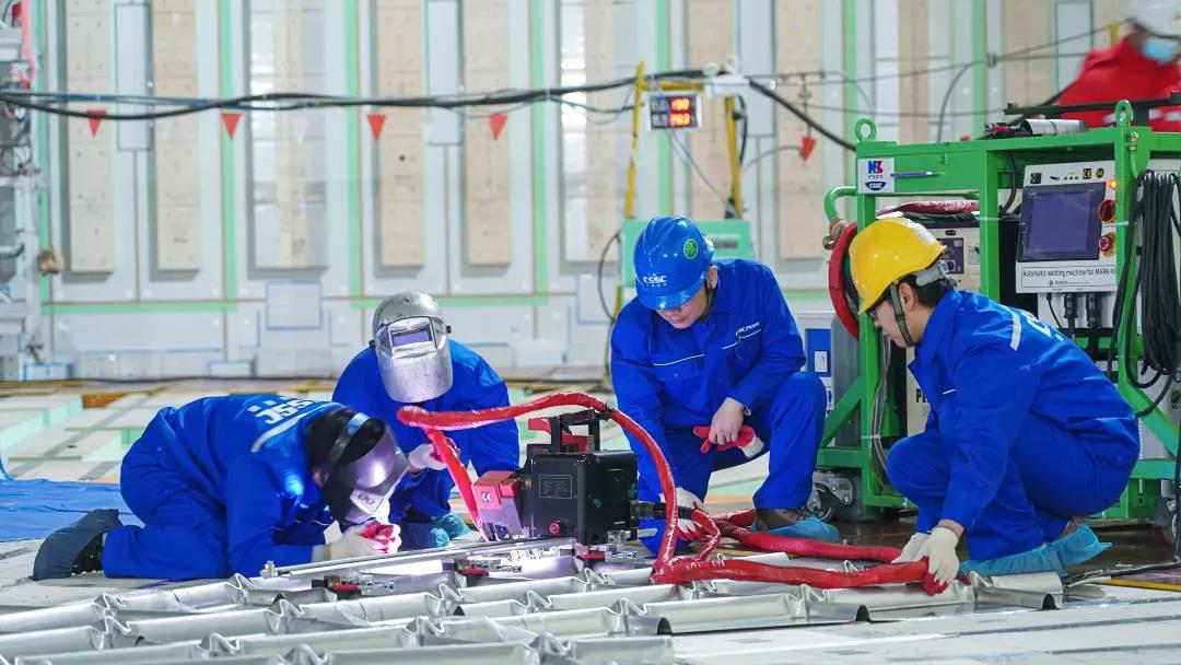 滬東中華是國際LNG儲運裝備制造領(lǐng)先企業(yè),是唯一能夠同時建造No.96、MARK Ⅲ兩型LNG薄膜艙的船企。在中國船舶集團高質(zhì)量發(fā)展戰(zhàn)略引領(lǐng)下,滬東中華不斷加強開拓LNG全產(chǎn)業(yè)鏈,其中也包括將Mark Ⅲ圍護系統(tǒng)技術(shù)由海向陸延伸。公司組織了最精干力量,應用最先進技術(shù)工藝,實施最嚴格工程管理,派出130多人的建造團隊,奮戰(zhàn)在項目現(xiàn)場,執(zhí)行一流質(zhì)量標準,與各方精誠合作,通過該項目逐步帶動大型LNG薄膜儲罐技術(shù)在中國推向深入。