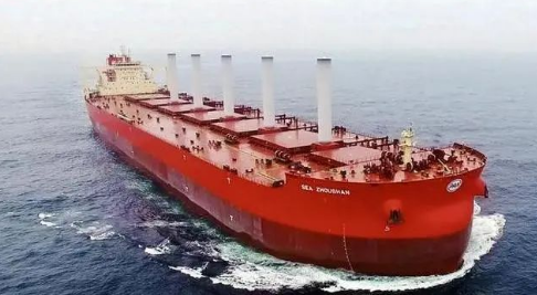 該船甲板上安裝4臺轉筒帆作為船舶輔助推進動力裝置,也是全球首艘安裝風動節能裝置的散貨船。