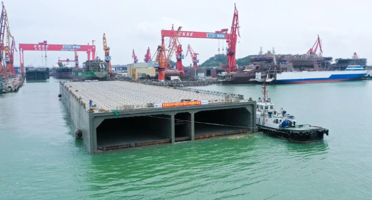 這是中國船舶集團旗下廣船國際35天完成制造、今天交付出塢的深中通道海底隧道沉管E24管節鋼殼!