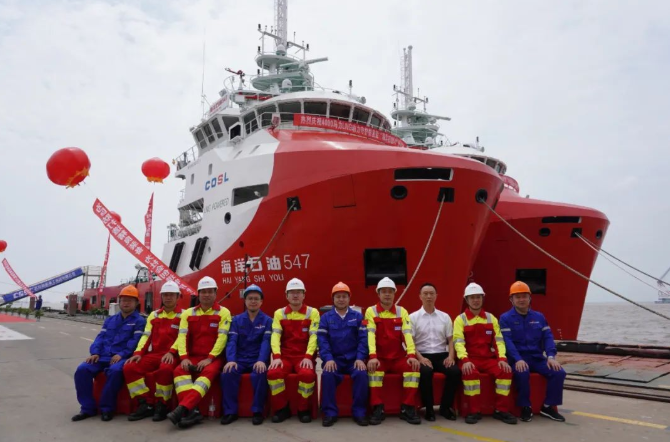 此次交付的“海洋石油542”和“海洋石油547”船是專(zhuān)門(mén)為我國(guó)海洋石油開(kāi)發(fā)提供支持服務(wù)的船舶,可為海上油氣開(kāi)發(fā)提供值班守護(hù)、貨物運(yùn)輸、救助以及對(duì)外消防等服務(wù)。該批船舶完全實(shí)現(xiàn)國(guó)內(nèi)設(shè)計(jì)、國(guó)內(nèi)建造,智能船舶系統(tǒng)、核心LNG儲(chǔ)罐及供氣系統(tǒng)、加注系統(tǒng)、主機(jī)、舵槳裝置均實(shí)現(xiàn)自主知識(shí)產(chǎn)權(quán)國(guó)產(chǎn)化,標(biāo)志著我國(guó)綠色化、智能化海工船設(shè)計(jì)、建造能力達(dá)到國(guó)際一流水平。