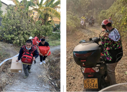 在重慶40多度的高溫天氣下,他們有的為當(dāng)?shù)鼐栀?zèng)礦泉水和食物等物資;有的加入挖隔離帶的隊(duì)伍中;有的在后方將物資運(yùn)送到統(tǒng)一堆放點(diǎn);山勢(shì)陡峭,有的則是成為“摩托幫”,將物資送到最前線。
