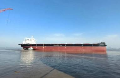 該型船為外高橋造船在新能源船型領域推出的重磅產(chǎn)品——新一代LNG雙燃料動力散貨船,采用LNG燃料,共配置2個C型LNG燃料罐,燃氣續(xù)航力達到20000海里,具有技術(shù)先進、節(jié)能環(huán)保等特點。