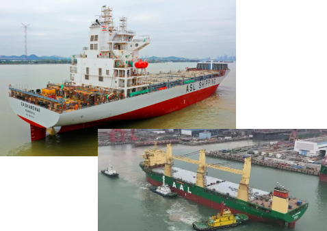 黃埔文沖同日完成2艘船舶出塢節(jié)點,包括為亞海航運批量建造的1600TEU系列支線箱船首制船、為AAL SHIPPING公司批量建造的32000DWT重吊船2號船,均為近年來黃埔文沖根據(jù)市場需求優(yōu)化的產(chǎn)品。