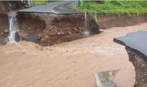 受近日強降雨影響,湖南省懷化市沅陵縣官莊鎮一處道路橋梁損毀。
