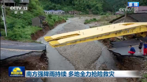 6月22日,國家區域性公路交通應急裝備物資湖南(婁底)儲備中心派出中國船舶集團旗下中船應急生產制造的26米應急機械化橋趕赴現場救援。
