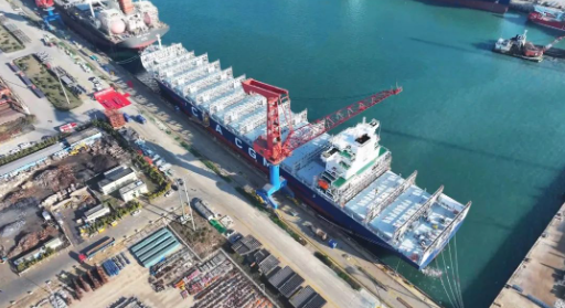 截至目前,北海造船新能源動力船舶造船訂單達(dá)50余艘,覆蓋了LNG、甲醇及氨燃料等船型,綠色船型訂單在手持訂單總量中的占比超90%;成功承接的全球首制32.5萬噸甲醇燃料超大型礦砂船(VLOC)和全球首制21萬噸氨燃料散貨船系列訂單引領(lǐng)了大型主力船舶綠色低碳發(fā)展方向,已經(jīng)開工的31.9萬噸氨燃料預(yù)留VLCC未來可配置兩個6000立方米氨燃料儲罐,為實現(xiàn)船舶“零碳”運營奠定了堅實基礎(chǔ)。在修船領(lǐng)域,北海造船成功承接了2艘10000TEU集裝箱船甲醇雙燃料改裝項目,此外,Moss型LNG運輸船改造為海上浮式儲存裝置的沃德福液化天然氣改裝船(FST)項目也正有序施工。