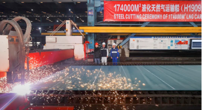 該項目的大型LNG運輸船均由滬東中華自主研發設計,擁有完全自主知識產權。首制船于2023年10月23日開工。