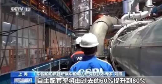 中國船舶集團旗下中船動力研究院技術專家 劉博:這臺CX40DF將匹配自主研制的增壓器、電控系統(tǒng)、油霧探測器,自主配套率將由過去的60%提升至80%。