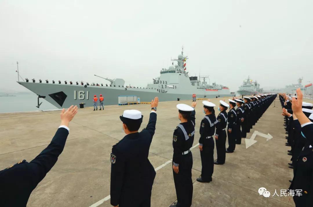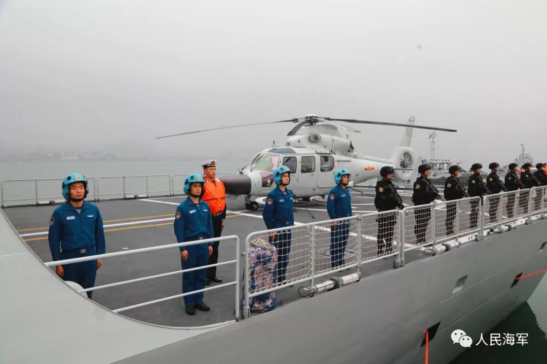 軍樂隊(duì)奏響《歡送進(jìn)行曲》,編隊(duì)艦艇依次解纜,緩緩駛離碼頭,任務(wù)官兵整齊列隊(duì)、士氣高昂,向祖國(guó)和人民揮手告別。