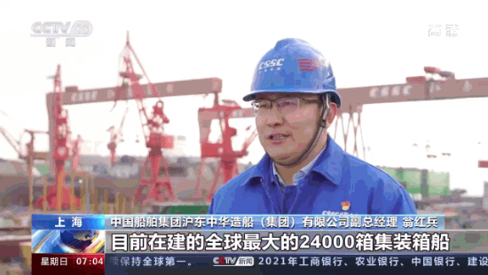 中國船舶集團滬東中華造船(集團)有限公司副總經理 翁紅兵:目前在建的全球最大的24000箱集裝箱船經濟性和環保性非常優越,獲得了市場的認可。