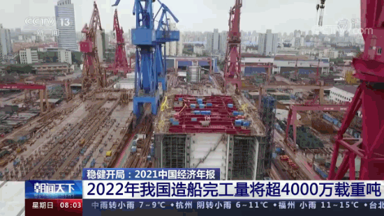 2021年,中國造船三大指標全面增長,造船完工量、新接訂單量、手持訂單量保持全球第一,實現了“十四五”的開門紅。