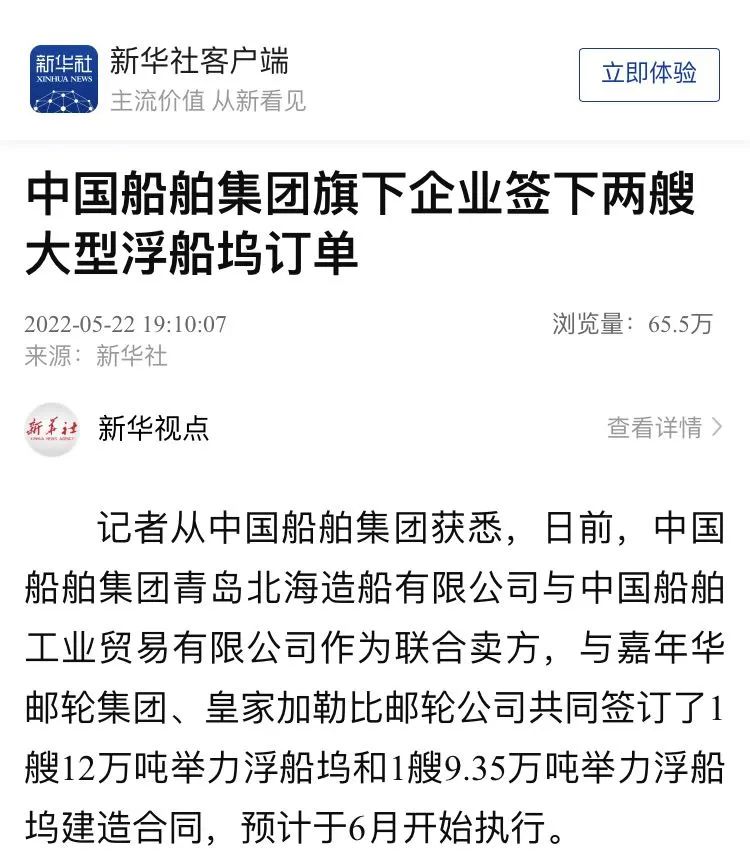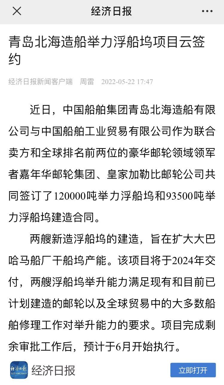 媒體聚焦|世界最大級!承接嘉年華郵輪和皇家加勒比郵輪2艘舉力浮船塢訂單