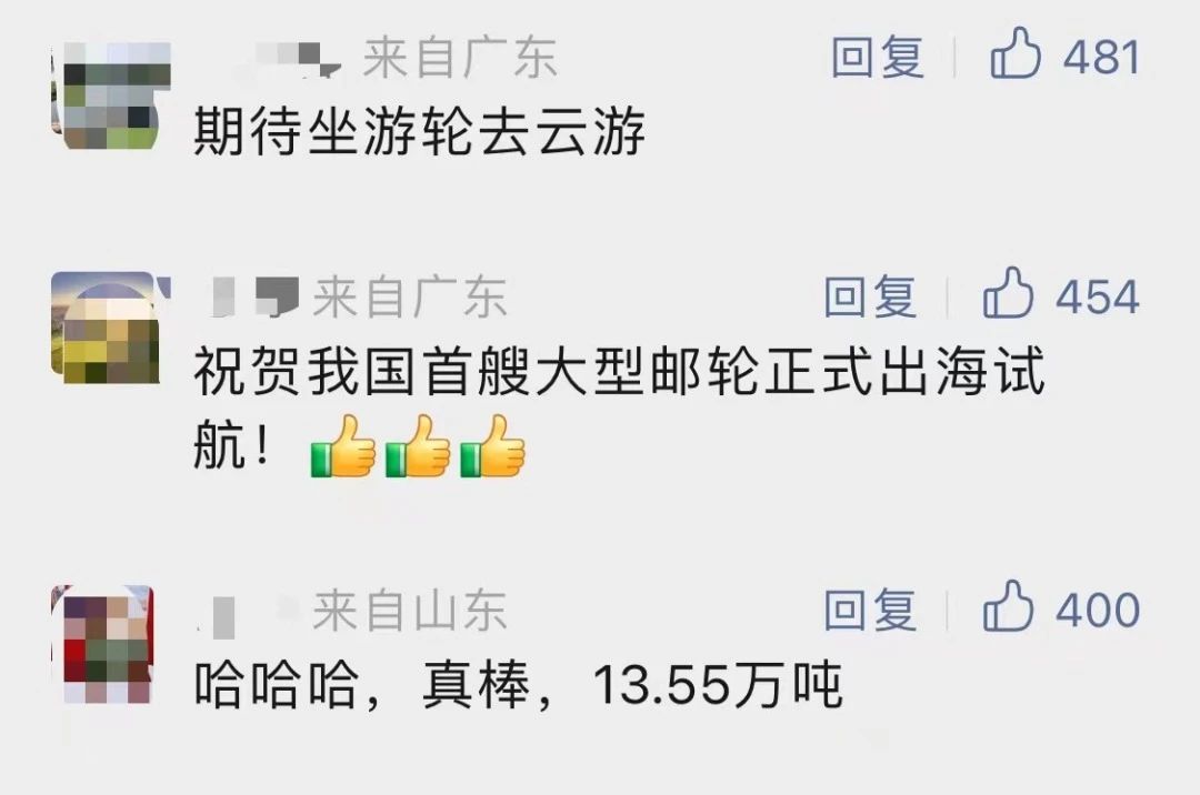 國產(chǎn)首制大型郵輪試航 各大媒體齊齊關(guān)注 ↓↓↓ 人民日報: 新華社: 央視新聞: 環(huán)球時報: 網(wǎng)友齊刷刷舉起小手手: 要上船!要上船! 讓我們一起期待 “愛達(dá)·魔都號” 試航凱旋!