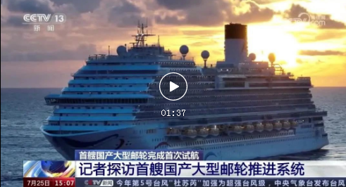 7月25日 央視《新聞聯播》 7月25日 央視《朝聞天下》 7月25日 央視《新聞直播間》 航速測速 感受郵輪強勁動力 記者探訪首艘國產大型郵輪推進系統 7月25日 新華社 7月26日 人民日報 7月26日 央視《朝聞天下》 記者獨家記錄首艘國產大型郵輪首次試航 一日四餐 保障1200多名試航人員飲食 7月26日 中國日報