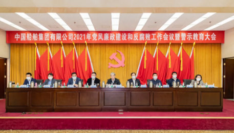 1月29日,中國船舶集團有限公司召開2021年黨風廉政建設和反腐敗工作會議暨警示教育大會,總結2020年黨風廉政建設和反腐敗工作,開展警示教育,部署2021年重點任務。會議強調,要以習近平新時代中國特色社會主義思想為指導,全面貫徹落實習近平總書記重要指示,認真貫徹落實黨的十九大和十九屆二中、三中、四中、五中全會精神,深入貫徹落實十九屆中央紀委五次全會以及國資委黨風廉政建設和反腐敗工作會議暨警示教育大會精神,堅決貫徹全面從嚴治黨方針,充分發揮全面從嚴治黨引領保障作用,堅定政治方向,保持政治定力,按照態度不能變、決心不能減、尺度不能松的要求,推進黨風廉政建設和反腐敗工作,為集團公司實現“十四五”高質量發展良好開局和加快建設世界一流船舶集團提供堅強保障,以優異成績慶祝中國共產黨成立100周年。