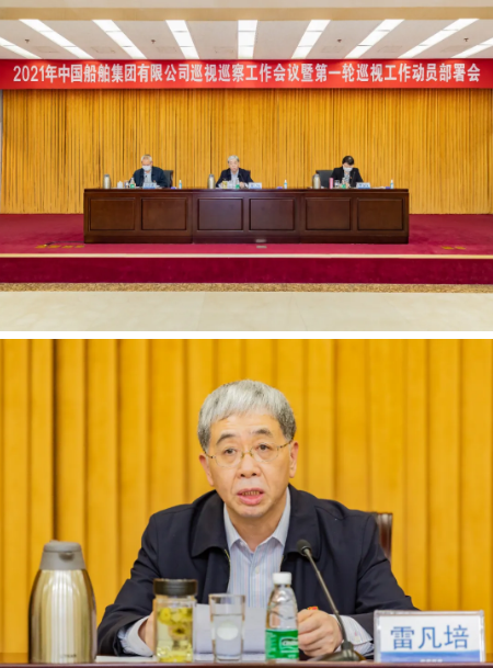 3月31日,中國船舶集團有限公司召開2021年巡視巡察工作會議暨第一輪巡視工作動員部署會。中國船舶集團黨組書記、董事長、巡視工作領(lǐng)導小組組長雷凡培,紀檢監(jiān)察組組長、黨組成員、巡視工作領(lǐng)導小組副組長李佳穎出席會議并講話。
